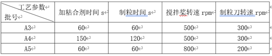 ▲濕法制粒工序-制粒:設置濕法混合制粒機的攪拌槳轉(zhuǎn)速、制粒刀轉(zhuǎn)速及制粒時間進行制粒,
