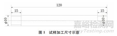 在45鋼連鑄坯的縱向取樣,試驗(yàn)時(shí)將鑄坯加工成規(guī)格為10mm×120mm(直徑×高度)的圓棒試樣,試樣加工尺寸如圖1所示,圓棒長(zhǎng)度方向?yàn)槔鞣较颉?/span>