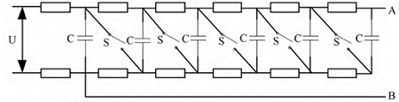 馬克思發(fā)生器( MARX):利用低壓直流電源 U 對電容 C并聯(lián)充電,再利用開關(guān) S 使所有電容支路串聯(lián)放電,在AB端輸出高電壓脈沖信號。