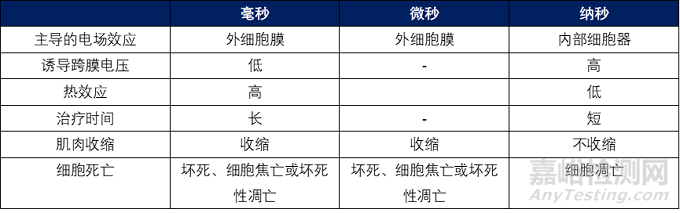 脈沖持續(xù)時間的增加將對細(xì)胞產(chǎn)生更大的電穿孔效應(yīng)。對于較長的脈沖,需要較低的電壓來維持相同數(shù)量的電穿孔細(xì)胞,是一種非線性關(guān)系,特別是當(dāng)持續(xù)時間<1毫秒時,需要更高的電壓才能達到相同的效果。例如,當(dāng)電場強度為137 V/cm時,100 ms脈沖可以導(dǎo)致細(xì)胞電穿孔,當(dāng)電場增加到575 V/cm,100μs 即可導(dǎo)致細(xì)胞電穿孔,當(dāng)電場強度升到10 kV/cm,獲得相同效果時僅用150 ns脈沖6。