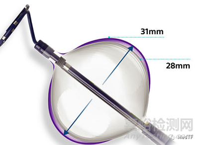 POLARx采用現(xiàn)代可彈性擴(kuò)張的球囊材料,實(shí)現(xiàn)一個(gè)球囊兩種尺寸 ---28mm和31mm。從而增大20% 以上的表面積,實(shí)現(xiàn)可適用一個(gè)患者不同大小的肺靜脈前庭。而美敦力的Arctic Front系列球囊直徑是固定的,不是23mm就是28mm。