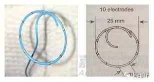 美敦力的環(huán)肺靜脈標(biāo)測(cè)導(dǎo)管的遠(yuǎn)端環(huán)形部分為25mm,帶有10個(gè)電極。