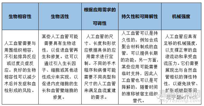 人工血管的設(shè)計(jì)和特性需要滿足以下幾個方面的要求: