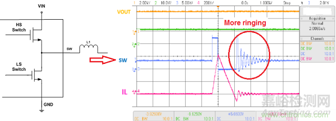 圖六:SW 處較多振鈴(無防振鈴控制)