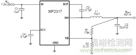 MP2317系列可以用作次級側(cè)DC / DC變換器(圖12)。