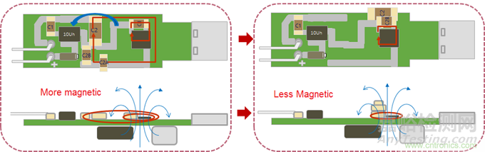 開關(guān)電源的反饋信號是對電磁干擾非常敏感的模擬信號,并且容易受到其自身的開關(guān)信號的干擾。良好的布局可以減少這種EMI干擾,而不良的布局可能會產(chǎn)生較大的紋波,甚至?xí)?dǎo)致電源無法正常工作。