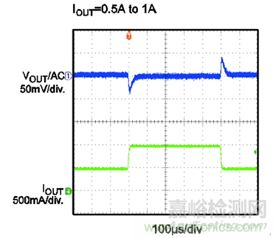 ● 出色的負(fù)載線路調(diào)整率以及瞬態(tài)響應(yīng)(圖15)