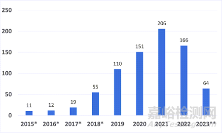 圖 按財(cái)政年度劃分的突破性設(shè)備稱號(hào)數(shù)量