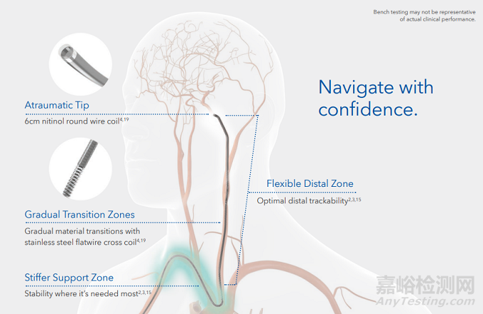 3)更好的通過性,可到達大腦中動脈M1段:遠端10/13/18cm為柔軟段,遠端60cm為超滑親水涂層處理,有利于通過性;