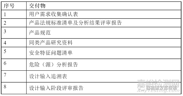 綜上所述,設(shè)計(jì)輸入的階段交付清單如下。