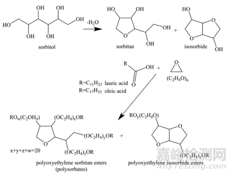 圖2:聚山梨酯80的合成。使用月桂酸代替油酸,以類(lèi)似的方式合成聚山梨醇酯20。