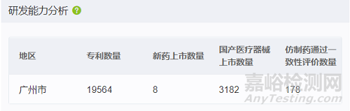 從研發(fā)能力看,截至2023年7月底,廣州市擁有生物醫(yī)藥產(chǎn)業(yè)領域?qū)@麛?shù)量為19564個,新藥上市數(shù)量8個(創(chuàng)新藥、改良型新藥),國產(chǎn)醫(yī)療器械上市數(shù)量3182個(以注冊證計),仿制藥通過一致性評價數(shù)量178個(以受理號計)。