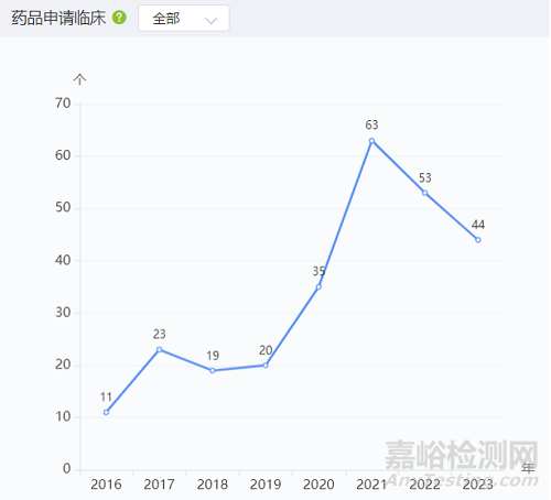 圖3 廣州市藥品申請臨床數(shù)量情況