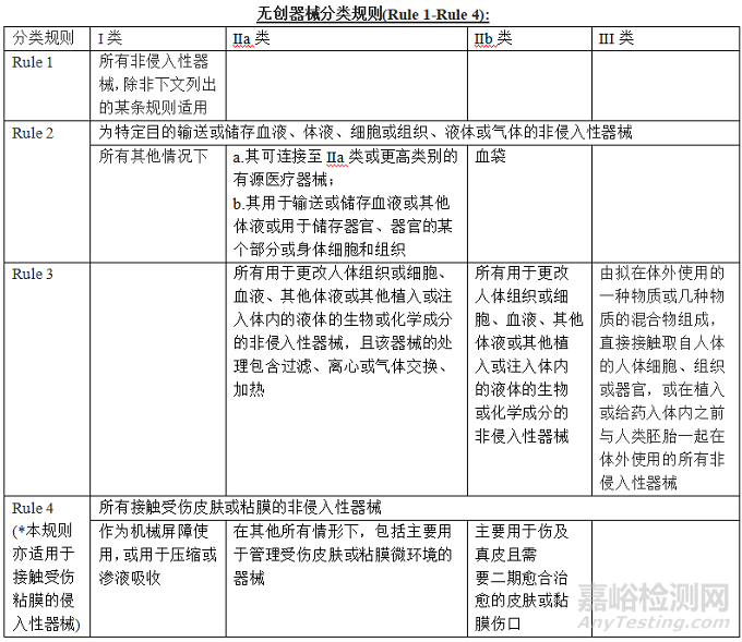 無創(chuàng)器械分類規(guī)則:Rule 1-Rule 4