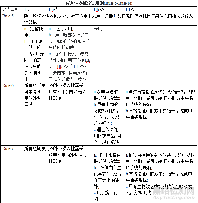 侵入性器械分類規(guī)則:Rule 5-Rule 8