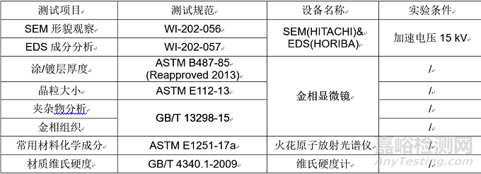 1、測試項(xiàng)目、測試規(guī)范及設(shè)備信息