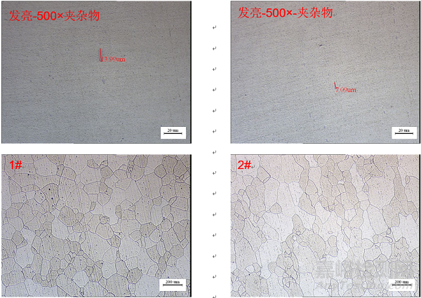 雖然基材晶粒度、析出物、化學(xué)成分、硬度等均符合檢規(guī)規(guī)定,但亮斑試樣的夾雜物較大,同時(shí)化學(xué)成分中Fe含量高于正常試樣;
