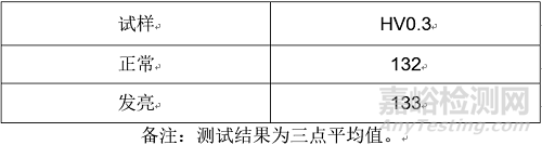 正常及發(fā)亮試樣的硬度均大于130 HV0.3,符合檢規(guī)規(guī)定。
