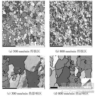圖10 不同焊接速度下接頭焊核區(qū)及熱影響區(qū)晶粒形貌圖