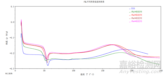 圖1 添加1‰不同固化促進(jìn)劑的DSC效果圖