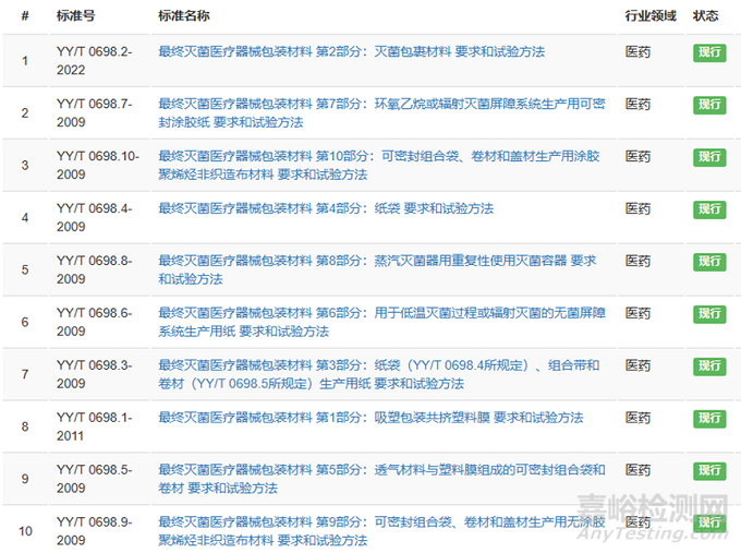 對(duì)于最終滅菌醫(yī)療器械包裝材料參考YY/T 0698系列標(biāo)準(zhǔn)。