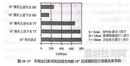 需要注意的是,不同過(guò)濾器接口內(nèi)徑大小不同,在一定流速下的壓差也會(huì)有較大差異。另外,過(guò)濾方向不同的過(guò)濾器壓差也會(huì)有差異。如下圖所示。