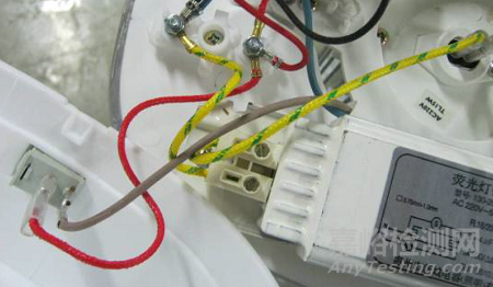 2、如果某個產(chǎn)品反其道而行之,例如圖中黃/綠組合雙色線在內部用作載流線,有可能在下一次用戶更換損壞的電源軟線時將電源軟線的黃/綠組合雙色線接地線與產(chǎn)品內部黃/綠組合雙色線部件相連,導致觸電事故。