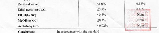 一般來(lái)說(shuō),考慮到多肽固相合成的特殊性,每步氨基酸偶聯(lián)完成及脫保護(hù)后都會(huì)使用大量溶劑洗滌肽樹(shù)脂,肽樹(shù)脂裂解得到的粗肽還會(huì)使用HPLC制備,凍干,因此殘留在保護(hù)氨基酸中的少量溶劑傳遞到最終API中的風(fēng)險(xiǎn)很小。但這里應(yīng)特別注意乙酸,乙酸乙酯,醇類溶劑的殘留,因?yàn)檫@些溶劑可能在氨基酸活化偶聯(lián)過(guò)程與活化的氨基酸或肽鏈發(fā)生副反應(yīng),如殘留的乙酸在氨基酸偶聯(lián)過(guò)程中會(huì)與肽鏈上裸露的氨基反應(yīng)導(dǎo)致肽鏈封端;殘留的醇類溶劑可能在氨基酸活化過(guò)程中與活化的羧基反應(yīng)造成活化的氨基酸被鈍化,使氨基酸當(dāng)量降低,最終可能導(dǎo)致氨基酸偶聯(lián)不完全,產(chǎn)生缺失肽雜質(zhì)。以鄭源生化某氨基酸為例圖4,該公司在COA中控制了乙酸乙酯,乙醇,甲醇,乙酸。其中乙酸乙酯的標(biāo)準(zhǔn)為≤0.5%,實(shí)際檢出為0.10%。根據(jù)ICHQ3C,乙酸乙酯為3類溶劑,設(shè)定標(biāo)準(zhǔn)為≤0.5%符合的ICHQ3C要求,但是考慮到乙酸乙酯可能造成氨基乙?;舛说娘L(fēng)險(xiǎn),我們還應(yīng)對(duì)乙酸乙酯進(jìn)行加標(biāo)研究,確定一個(gè)更加合適的標(biāo)準(zhǔn)。