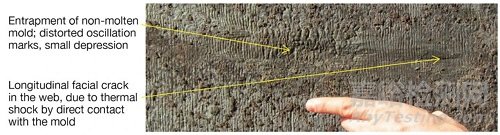 圖18 在JFE公司的Kurashiki鋼廠的正常澆鑄異形坯翼緣端部裂紋(沒有漏鋼)