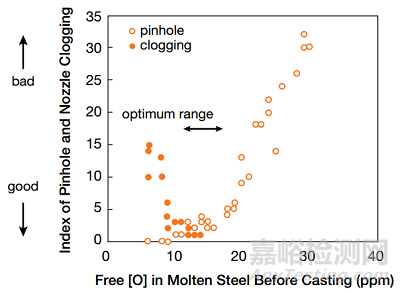 圖15 在Mn-Si鎮(zhèn)靜鋼中優(yōu)化脫氧制度減少氣泡和防止水口堵塞
