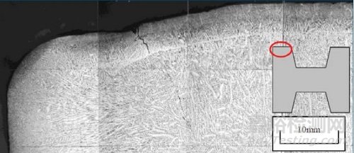圖8 異形坯1050mm寬度,翼緣和腹板交界處的縱向裂紋