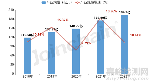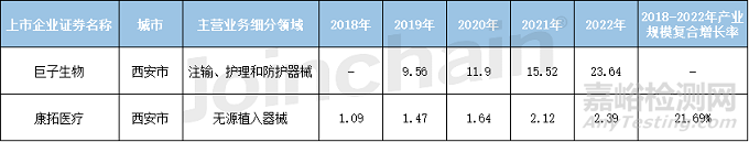 圖表1 2018-2022年陜西省醫(yī)療器械產(chǎn)業(yè)規(guī)模情況(單位:億元)
