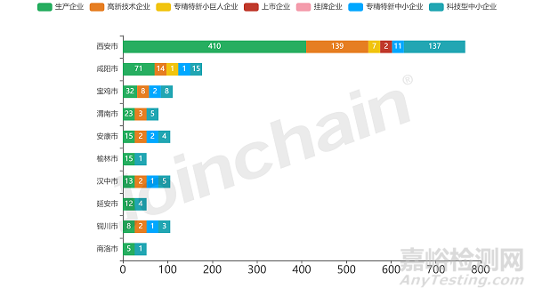 西安市有生產(chǎn)企業(yè)410家,其中,有高新技術(shù)企業(yè)139家,有專精特新小巨人企業(yè)7家,有上市企業(yè)2家,有專精特新中小企業(yè)11家和科技型中小企業(yè)137家;