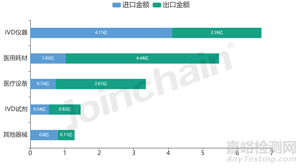 圖表7 2022年陜西省醫(yī)療器械品類進(jìn)出口情況(億元)