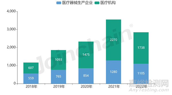 據(jù)統(tǒng)計(jì),2018-2022年陜西省醫(yī)療器械生產(chǎn)企業(yè)專利發(fā)布總數(shù)共計(jì)4563件,2022年有1105件,其中2021年數(shù)量最多,達(dá)1280件;醫(yī)療機(jī)構(gòu)專利發(fā)布數(shù)量共計(jì)7183件,2022年有1738件,其中2021年數(shù)量最多,達(dá)2270件。