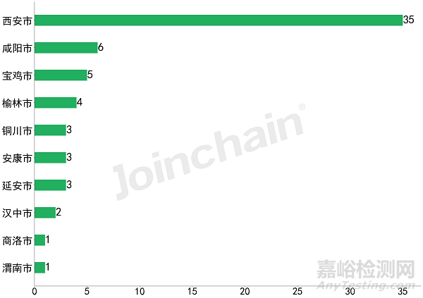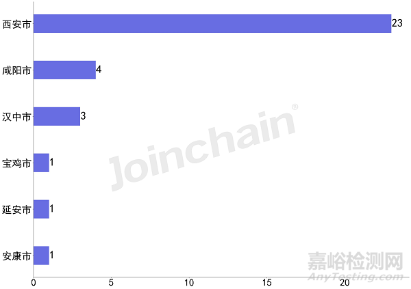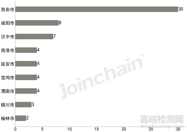 圖表18 陜西省各地級(jí)市醫(yī)療器械檢測(cè)機(jī)構(gòu)數(shù)量分布(單位:家)