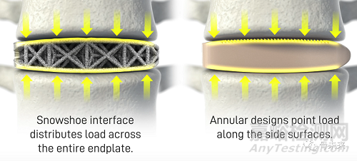 雪鞋接口是一種特殊的接口設(shè)計(jì),類似于雪鞋的結(jié)構(gòu),可以增強(qiáng)植入物與骨骼之間的連接和穩(wěn)定性,能夠?qū)⒇?fù)載分布在端板上,最大限度地減少點(diǎn)載荷(局部集中載荷)并降低植入物下沉風(fēng)險(xiǎn)。