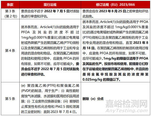 該修訂主要是在2023年8月18日后,將聚四氟乙烯(PTFE)微粉中的全氟辛酸(PFOA)及其鹽類的含量限值降低至0.025 mg/kg。現(xiàn)時1 mg/kg的限值僅繼續(xù)適用于將被運(yùn)輸或處理的PTFE微粉,以將PFOA及其鹽類的濃度降低至0.025 mg/kg以下。