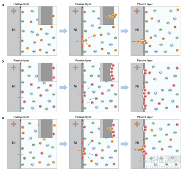 ▲圖1. 鎳基底在含Cl-和含Br-溶液中的腐蝕過(guò)程
