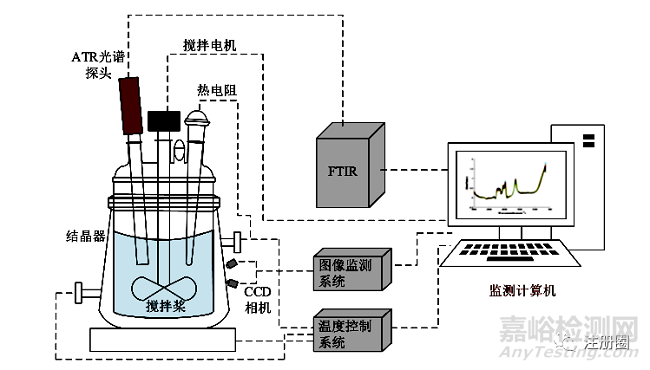 ▲ 圖1- ATR-FTIR在線監(jiān)測結晶系統(tǒng)示意圖