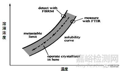 SFC/CFC控制方式是基于監(jiān)控結晶過程溶液濃度在介穩(wěn)區(qū)內(nèi)的基礎上建立起來的。通過FTIR和FBRM等PAT工具探測結晶相圖介穩(wěn)區(qū)間,自動確定生產(chǎn)過程時域的最佳操作軌跡,見圖3。