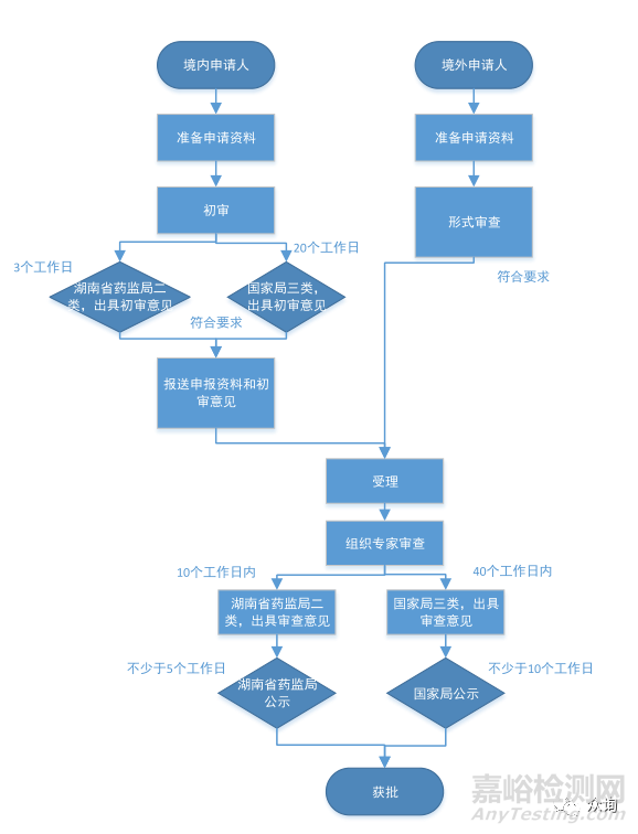 先經(jīng)省局初審,通過后上報國家局(境外例外) |