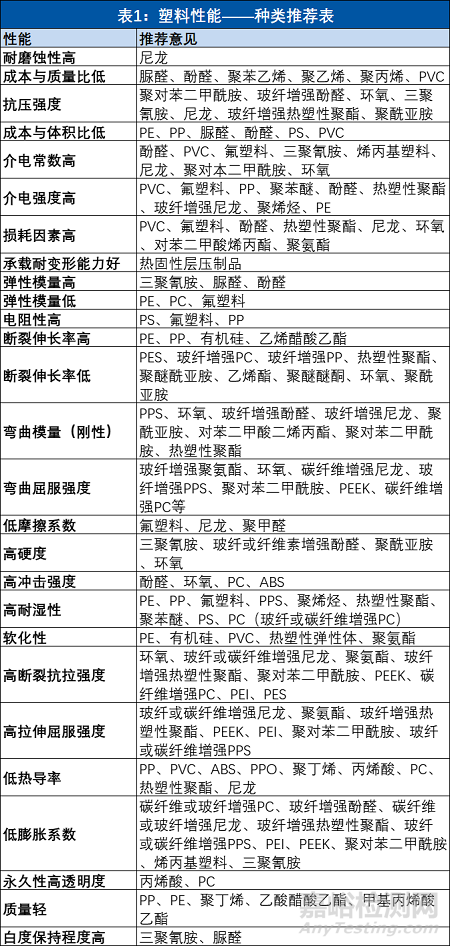 塑料基本性能指標(biāo)對比,及常見工程塑料性能和用途