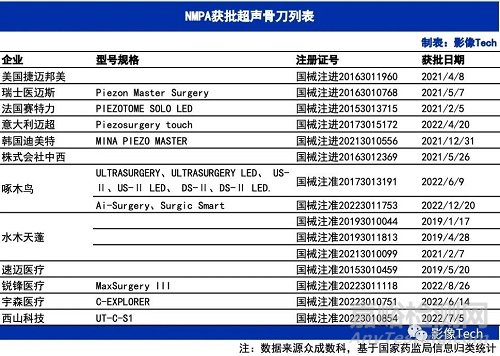 超聲骨刀進入我國市場時間較短,尚處于市場培育階段,是我國骨科手術(shù)新興耗材。啄木鳥、水木天蓬、速邁是超聲骨刀三大國產(chǎn)公司。超聲骨刀適用范圍廣,對應(yīng)潛在空間巨大。據(jù)中研普華產(chǎn)業(yè)研究院的數(shù)據(jù),預(yù)計 2025 年,國內(nèi)超聲骨刀行業(yè)市場規(guī)模將突破15 億元。截至2023年8月7日,NMPA數(shù)據(jù)顯示有12家企業(yè)共15款超聲骨刀注冊證在有效期內(nèi)。