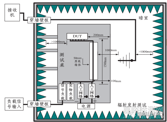 若測試頻率小于30MHz時,采用垂直極化方式進行測試:若測試頻率在 30MHz-2.5GHz范圍時, 應(yīng)該分別采用垂直和水平極化對DUT輻射發(fā)射進行測試: 當測試頻率大于1GHz,天線正對DUT中心。