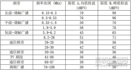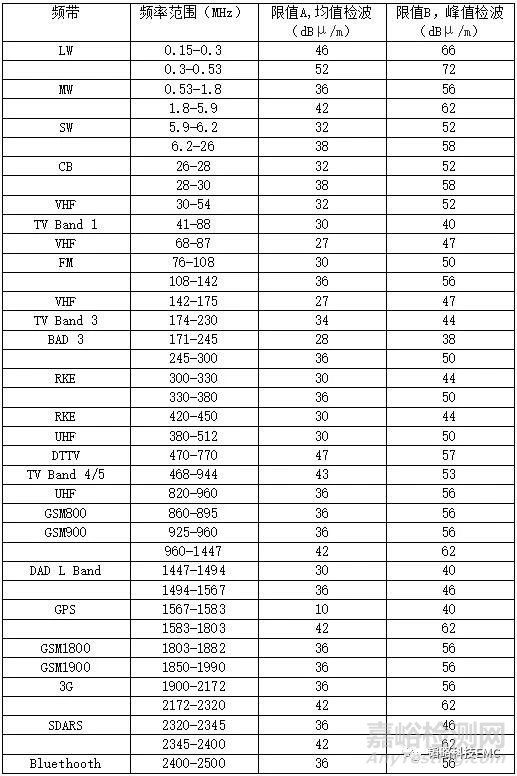 注: 對于表中有重疊的頻段,限值按嚴格的要求。