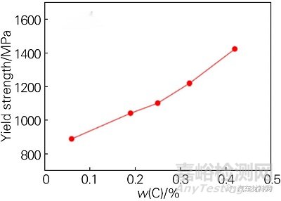 圖3 Q&P鋼屈服強(qiáng)度隨著C含量的變化[11]