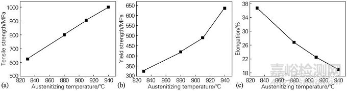 圖10 奧氏體化溫度對(duì)Q&P鋼力學(xué)性能的影響[30]