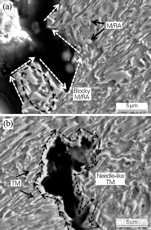 圖11 不同奧氏體化時(shí)間下Q&P鋼中微裂紋的擴(kuò)展路徑 [36]