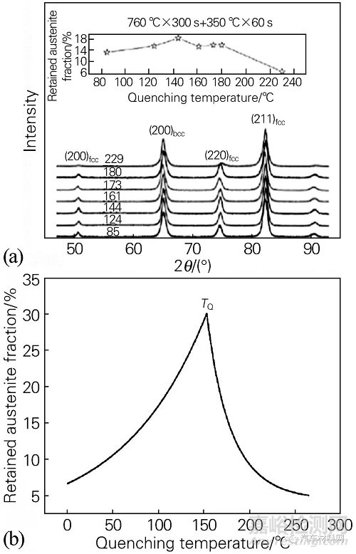 圖13 淬火溫度對(duì)殘留奧氏體、二次馬氏體體積分?jǐn)?shù)以及奧氏體中C含量的影響[38]